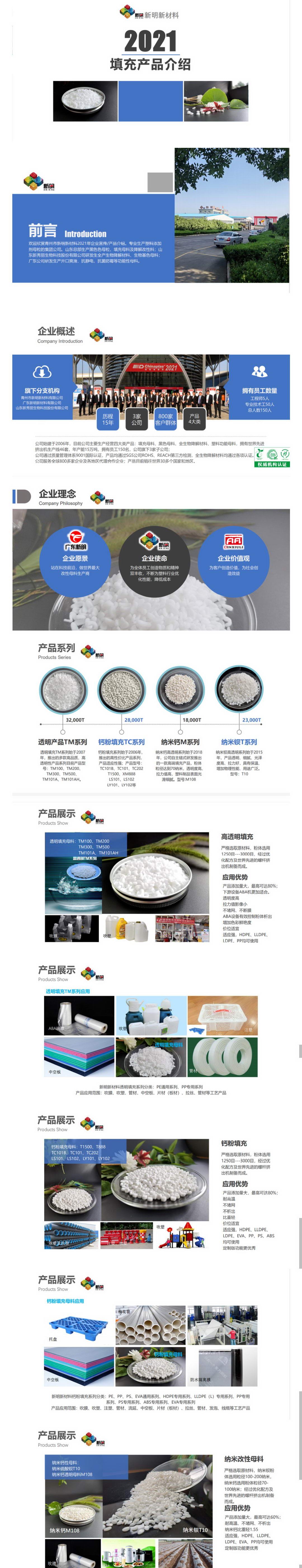 新明新材料有限公司,是一個專業生產塑料添加劑母粒的集團公司。山東總部生產色母粒、生物降解材料、填充母料及降解改性料;山東新秀麗主要生產生物降解材料生物降解色母料塑料黑色母料;廣東公司研發生產開口爽滑、抗老化、抗靜電、抗菌防霉等功能性母料,下屬振熙助劑公司從事助劑貿易多年,在塑料改性及助劑應用方面有豐富的實踐經驗。新明新材料產品廣泛應用于食品包裝、玩具、塑料管道、工程塑料、塑料家居用品、個人護理材料、日用輕工、農業等多個領域成。憑借多年積淀的經驗、借助先進的技術和完善的管理體系,公司已為國內外眾多客戶提供聚合體的著色和改性全系列一體化解決方案。
